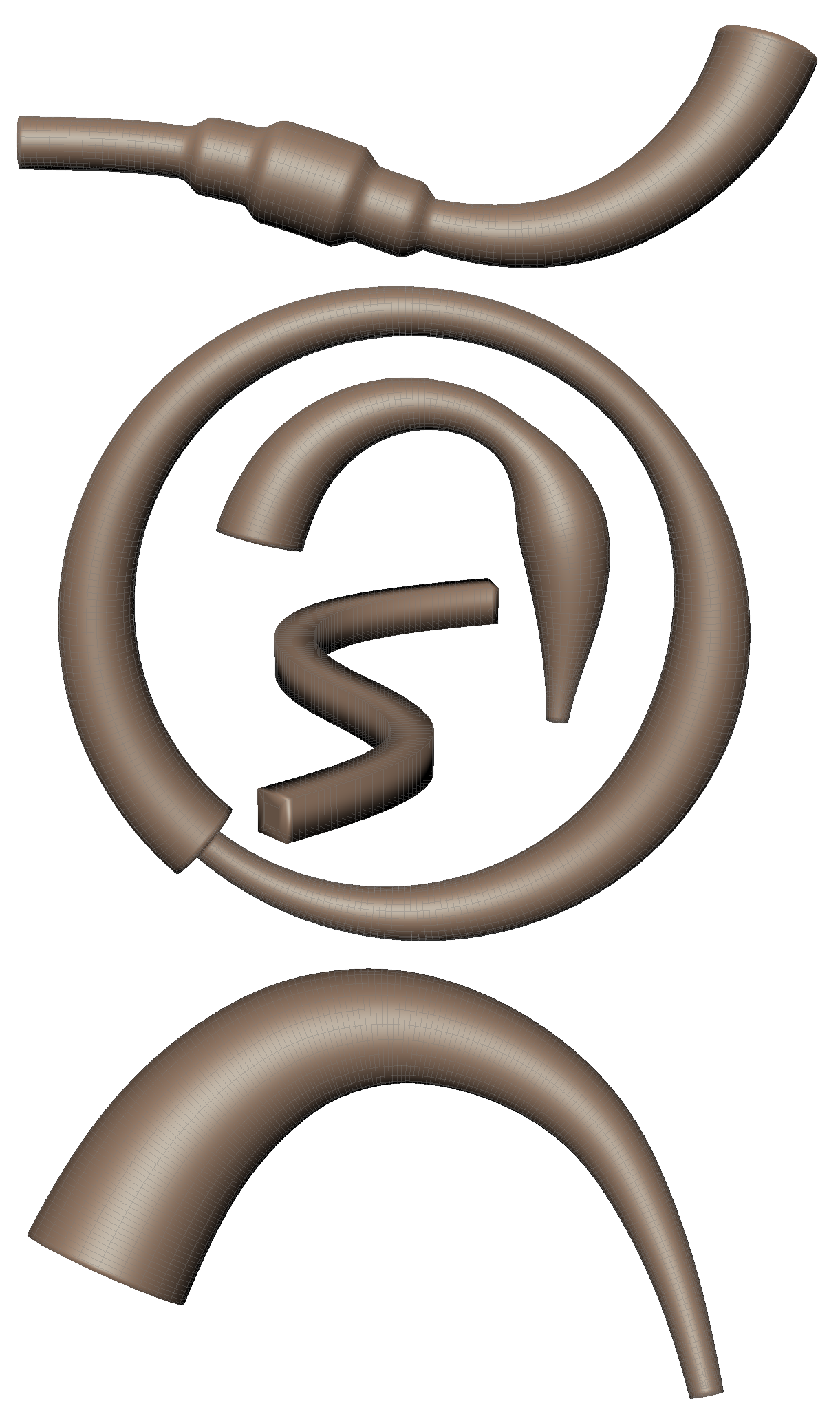 The Curve Sweep tool extrudes a procedurally generated tube (“sweep mesh”) along a Mudbox 3D mesh curve. The sweep mesh is constructed of all quad geometry, for better subdivision. As well, the curve used can be open or closed. When the curve is open, the sweep mesh will contain flat end caps with a specified number of divisions. When the curve is closed, the sweep mesh will be fully connected. The resulting sweep mesh is independent of the curve and its source mesh (i.e., it is its own mesh). The Curve Sweep parameters include the following: