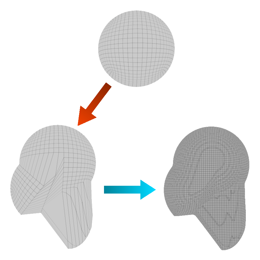 As an example, DynaSkin would be useful in shaping a sphere into a full human character base mesh.